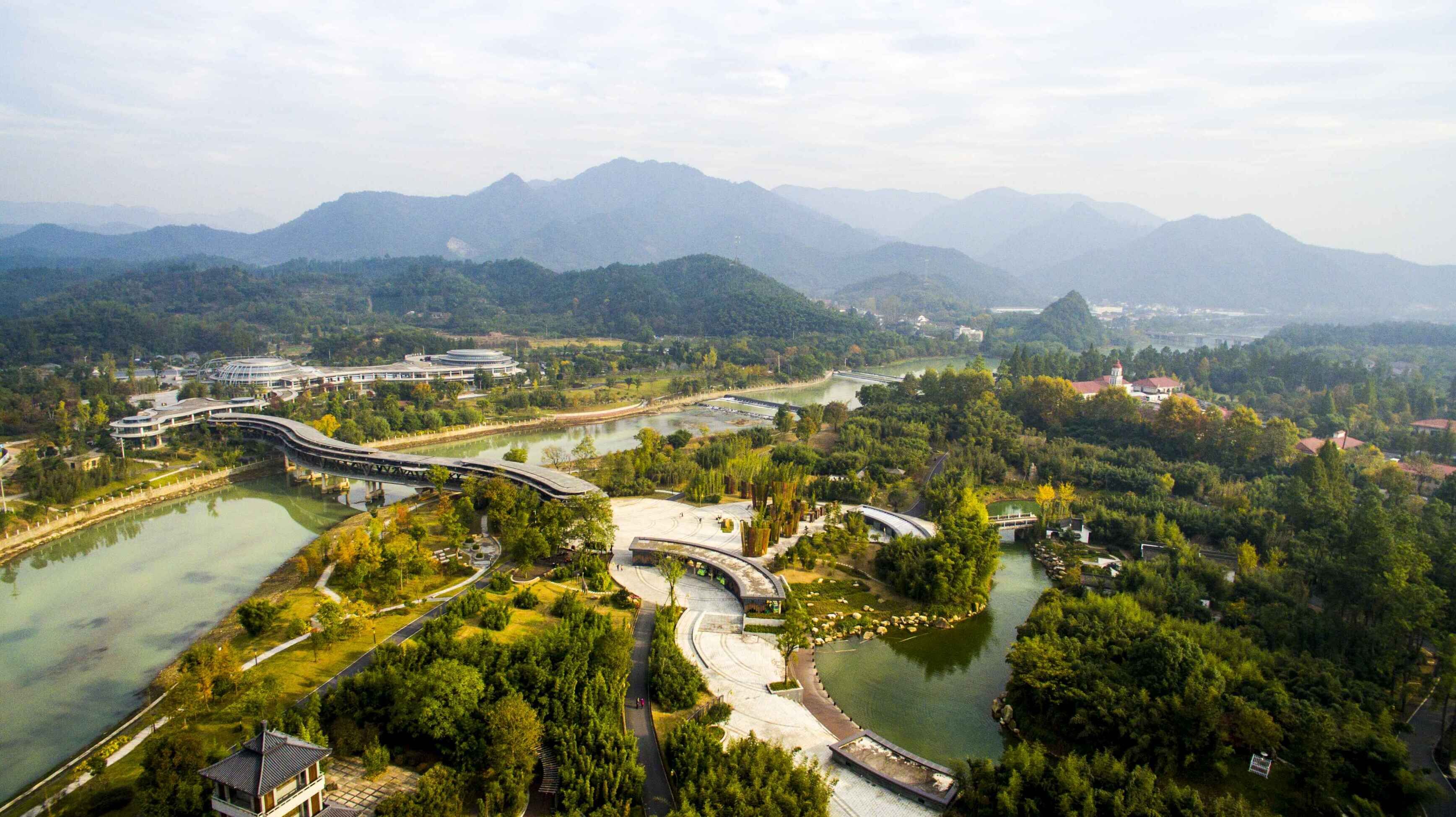 中國竹子博物館于2000年10月26日開館,全館占地面積12000平方米,總投資2000萬人民幣,館內(nèi)分為序廳、歷史資源廳、栽培利用廳、文學藝術廳、學術報告廳、工藝集萃廳、國際陳列廳等8個展廳。它們反映了中華6000年的竹歷史、竹文化,以及古今中外各類竹工藝精品,各類竹筍標本,竹文化底蘊十分豐富。館內(nèi)的巨龍竹,是世界上最粗,最大的竹子;工藝品廳的竹編《清明上河圖》,由高級工藝美術師盧光華先生根據(jù)竹編藝術要求再度創(chuàng)作,帶領6位竹編藝人用兩年半的時間花費三十余萬根精細竹絲編織而成的。它的外框底座是用優(yōu)質(zhì)的紅木根據(jù)傳統(tǒng)的東陽木雕雕刻而成的。整幅作品共長4.36米,高2.16米,共耗六千八百余工,看起來高雅華貴,古樸典雅,能雙面觀賞,具有永久的收藏價值。在二千年西子博覽會工藝美術大師作品暨工藝美術精品博覽會中獲優(yōu)秀創(chuàng)作獎。
